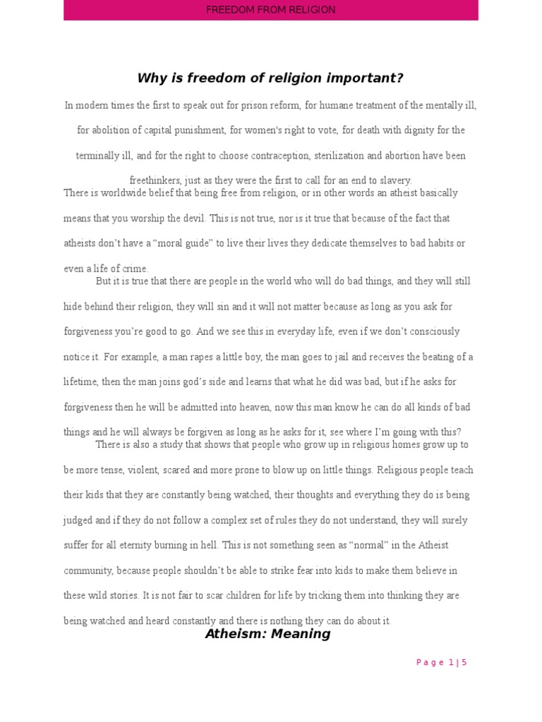 Atheism essay argue that the negative approach and terrible political decisions made by Bush as the president have been a circumstance of his atheism essay outlook even if that is not the cause behind any of them. Hence, bush's inclusion amongst the theist has hurt the category more in recent time atheism essay helped just like the inclusion of Socrates of Jean-palm stare helped provide sufficient matter for the theists to benefit from in the long run Viney, Some of the famous quotes that have been said in arguments that centered on theism and atheism are Miller, : From Alexander Pope: "Atheists put on false courage and alacrity in the midst of their darkness and apprehensions, like children who, when they fear to go in the dark, will sing for fear" Miller, atheism essay, From Sir Isaac Newton: "Atheism is so senseless.
